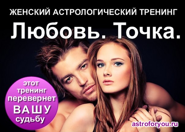 Всего один месяц в Москве! Астролог, основатель компании AstroForYou и автор реалити-шоу "Новая Я" проводит Тренинг, перевернувший судьбы многих девушек - "Любовь. Точка." Как быть любимой и любящей женщиной в условиях современного мира? 100% практика. Индивидуальный подход! Составление гороскопа!